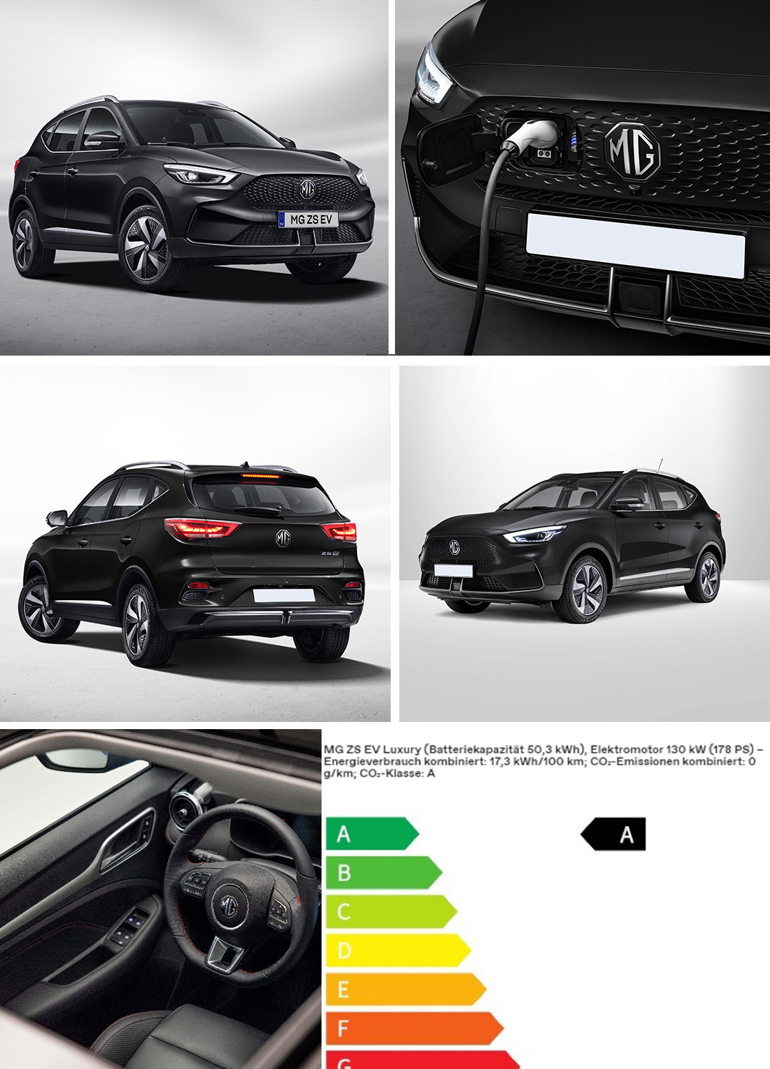 MG ZS EV (SUV) in Schwarz ist mit einem 70 kWh Akku ausgestattet. |